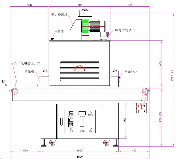 | 11、輸送速度:0~5m/min(速度表直接讀數(shù)) | 12、入口高度:100mm |