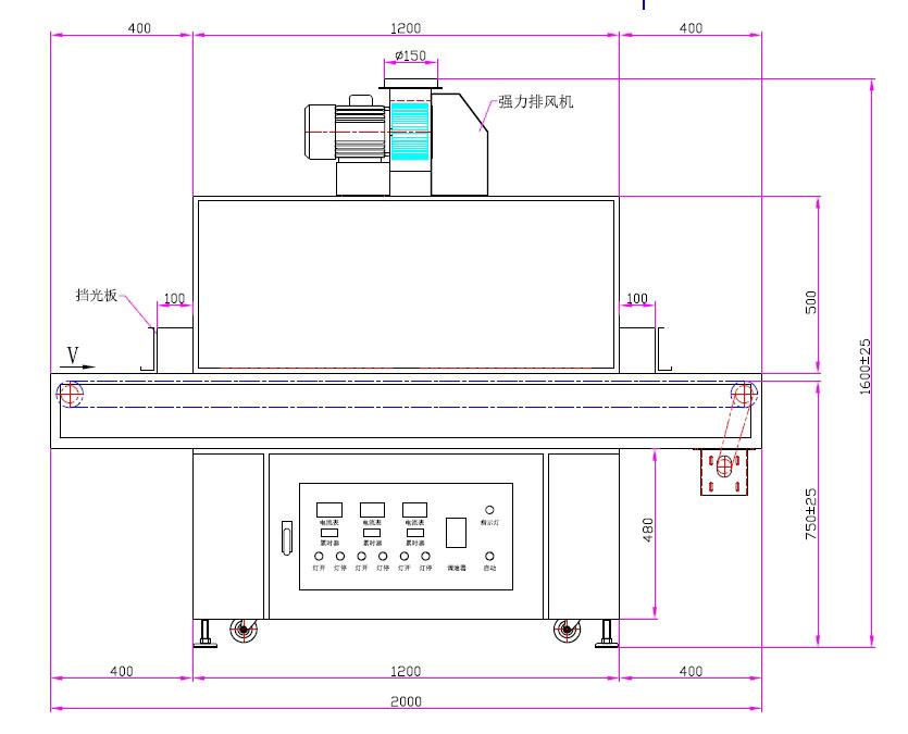 | 1. UV燈功率:2.0kW*3支(UV汞燈燈) | 2. UV燈總長:400mm、弧長:300mm |