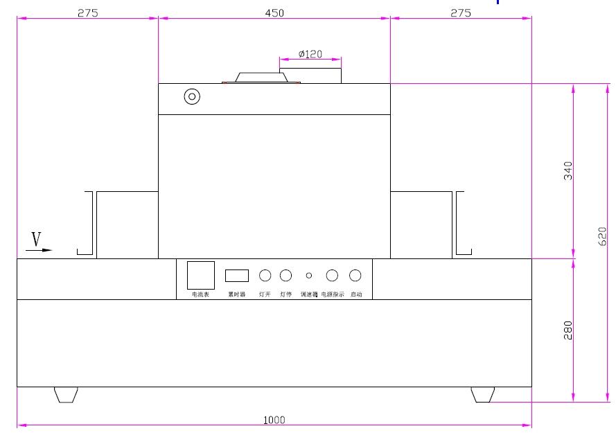 | 5.鈑金燈箱安裝插片反射器和光學平面玻璃 | 6.輸送材料:不銹鋼網帶 |