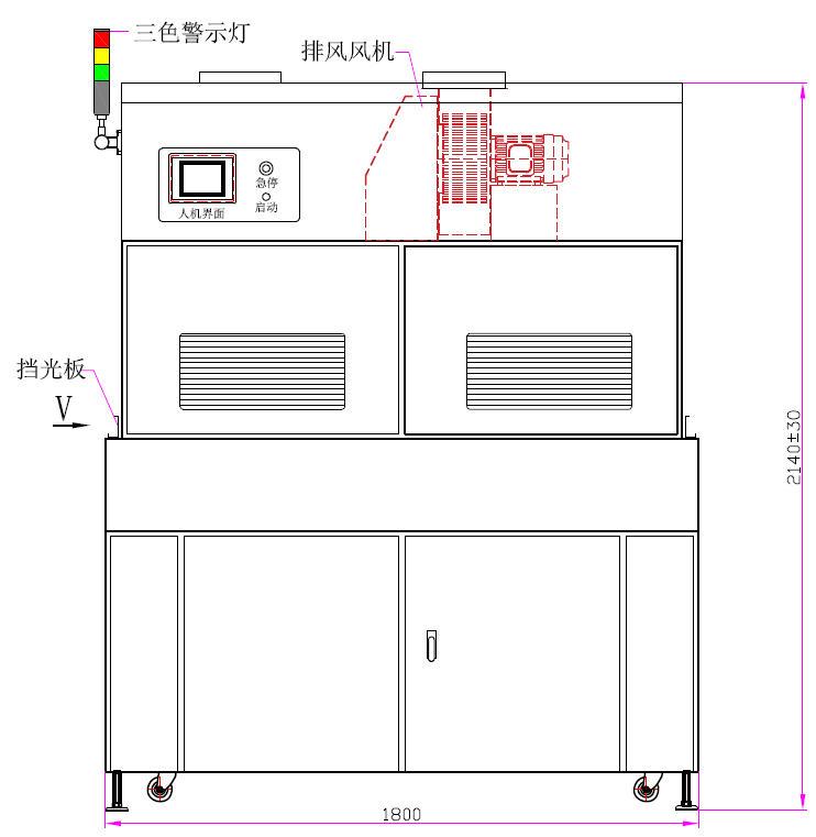 | 1. UV燈功率:10.0kw*4支(鹵素燈) | 2. UV燈總長:900mm、弧長:800mm |