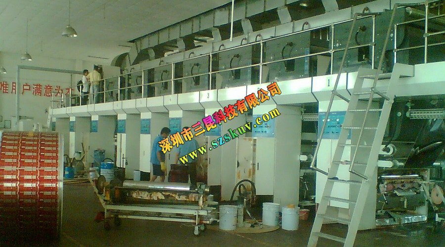 水冷uv設備,安裝在浙江凱登包裝,公司主要從事生產和銷售各種香煙標簽,藥品包裝,啤酒酒標,鋁箔頭 標簽等。印刷生產企業。
